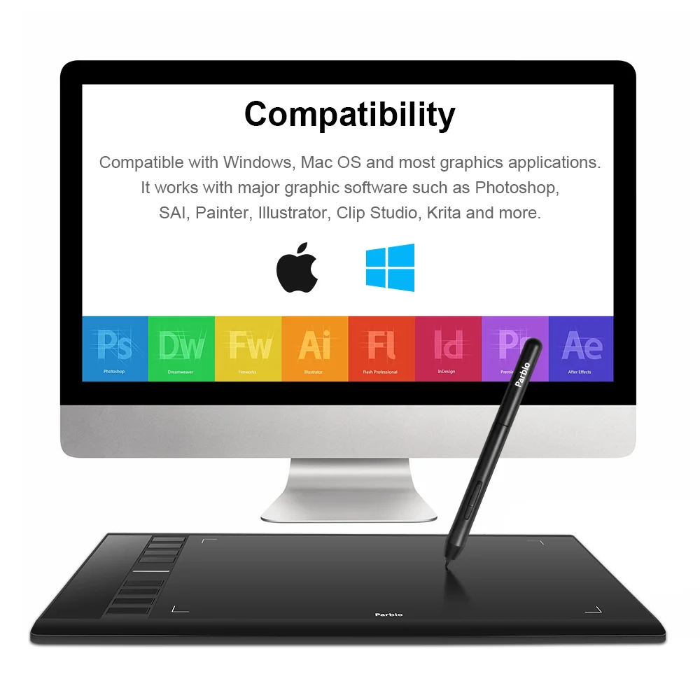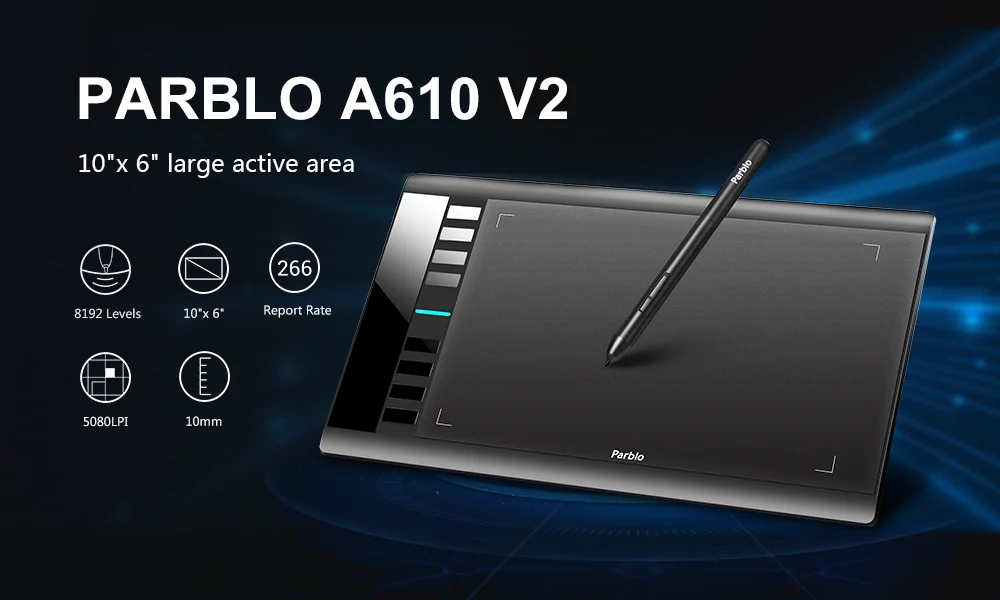 Графический планшет Parblo A610 V2 для рисования, безбатарейный стилус, цифровой планшет, USB-кабель
