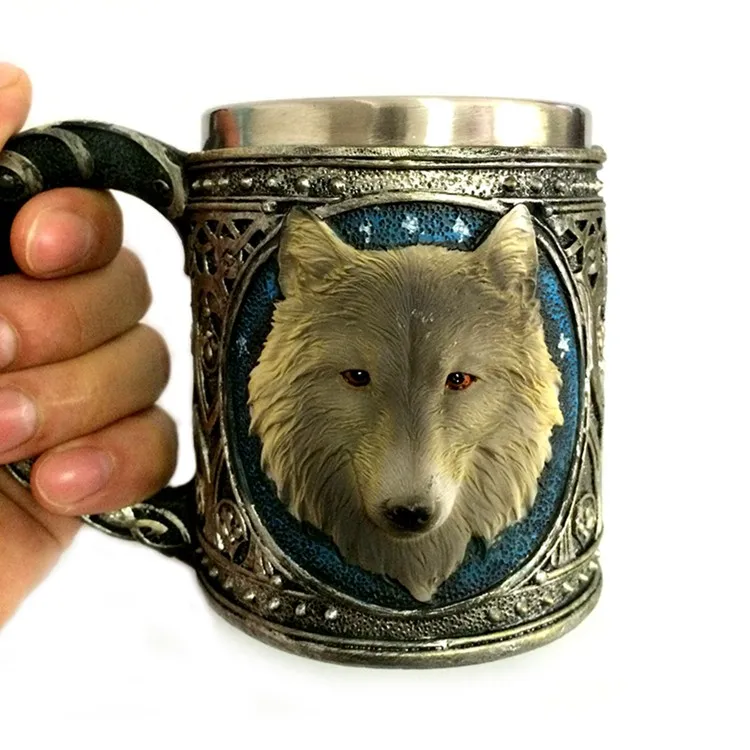 3D кружка из смолы с черепом, с двойной стенкой, нержавеющая сталь, Готический шлем, кофейная кружка, Череп, кость, рыцарь, Танкард, дракон, волк, король, чашка