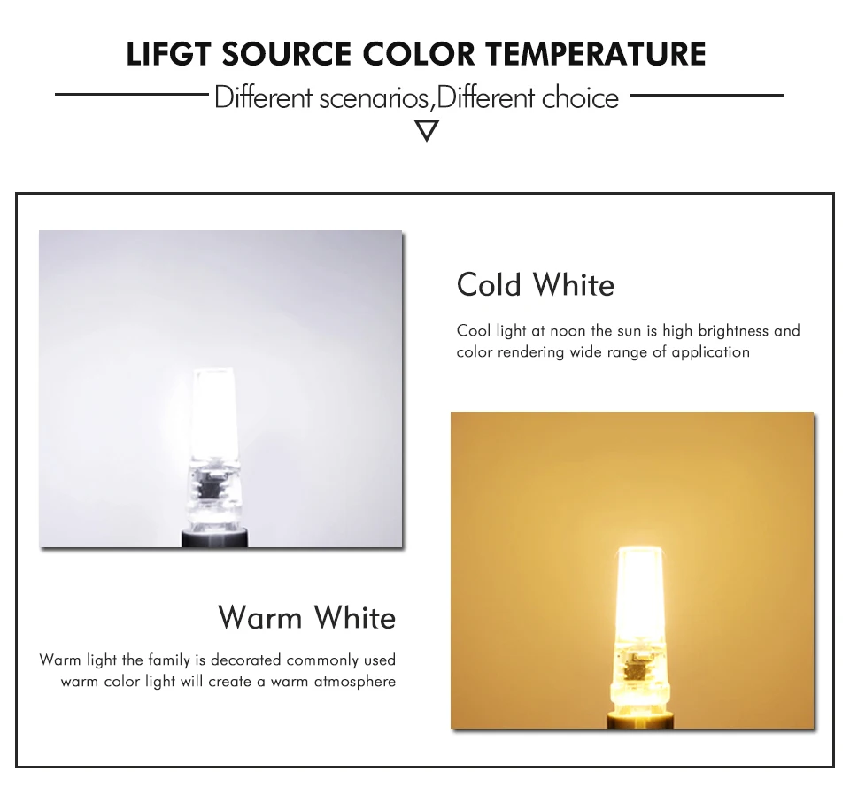 Три вида напряжения на выбор:AC12VИлиAC220-240V, Идеальная замена G4/G9 галогенная лампа непосредственно.