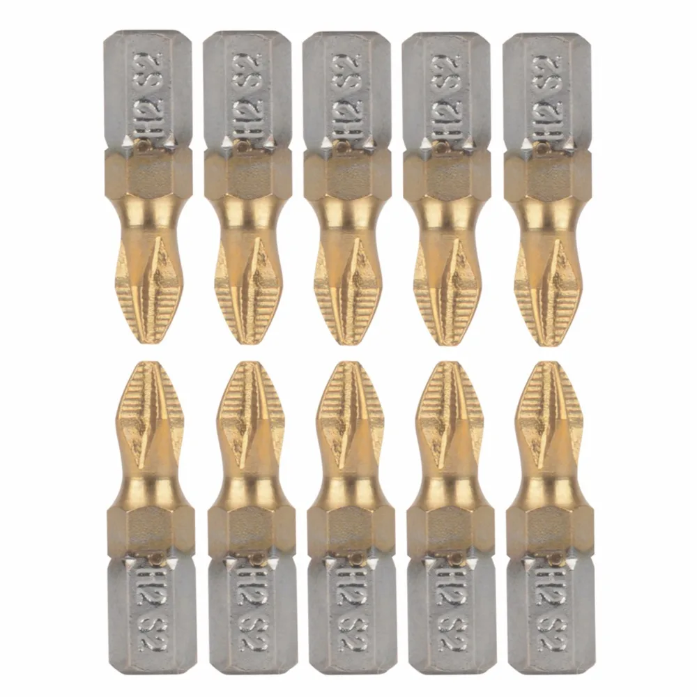 Отвертка PH2 с титановым покрытием, 10 шт., Нескользящие сверла с шестигранным хвостовиком 14 дюйма 25 мм для электроинструментов