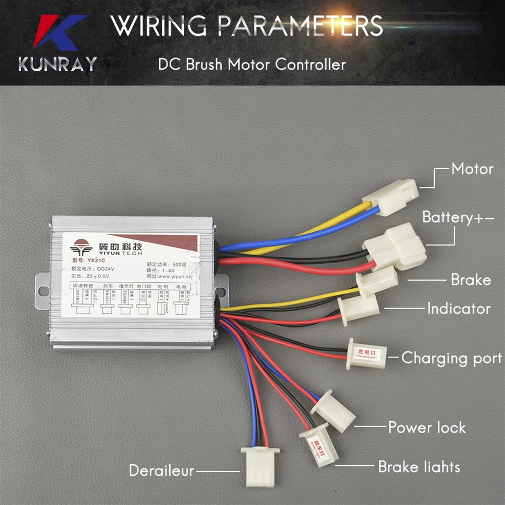 Щеточный контроллер YIYUN YK31C, 24 В36 В48 В, 500 Вт, аксессуары для электроскутера, регулятор скорости электродвигателя