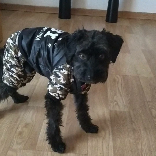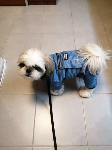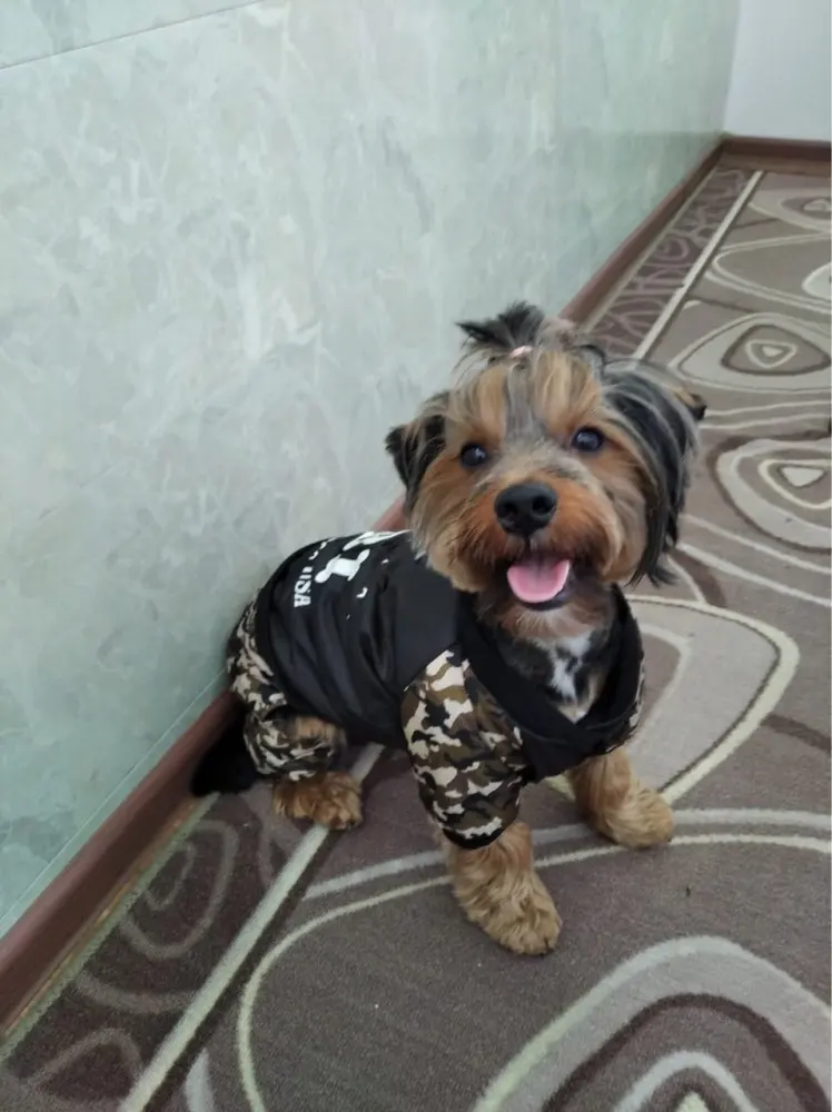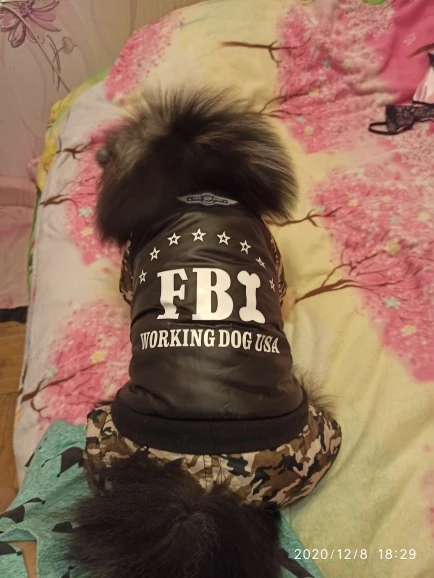 Хороший комбинезон, продавец отвечает на вопросы и советует размеры. На шпица 3,3 кг взяли xl. По размеру маломерит