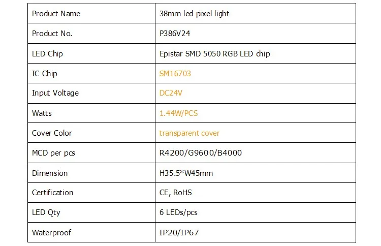 Новый тип 38 мм светодиодный пиксель разработан на основе наших 35 мм