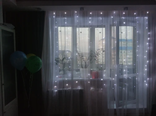 Шла больше месяца в Санкт-Петербург, я очень переживала, что не успеет прийти до Нового года, и вот за 3 дня до праздника курьер привез нашу гирлянду. Выглядит просто супер, распутывали долго, но довольно легко. Есть несколько режимов, освещение даёт яркое, окно очень нарядное теперь. спасибо !