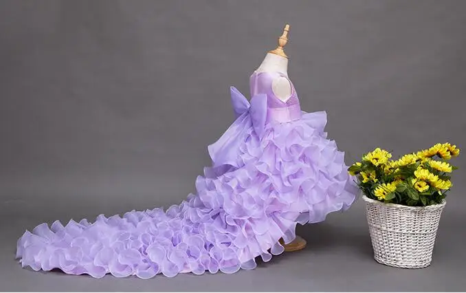 Свадебное платье с пышным шлейфом для девочек размеры от 3 до 14 лет высокое качество платье-пачка для девочек силуэт Русалка длинное платье принцессы с треугольным вырезом и большим бантом праздничное платье
