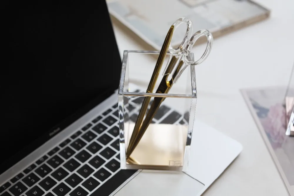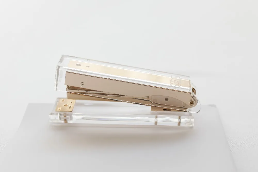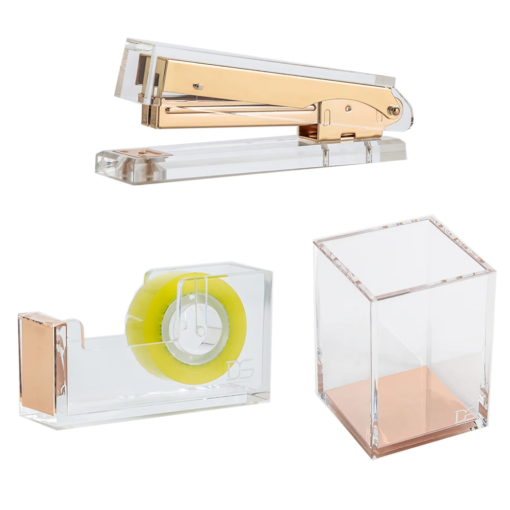 3 шт.компл. золотая акриловая серия канцелярских принадлежностей) диспенсер акриловой ленты 1) Золотой акриловый степлер 1) акриловая чашка для карандашей