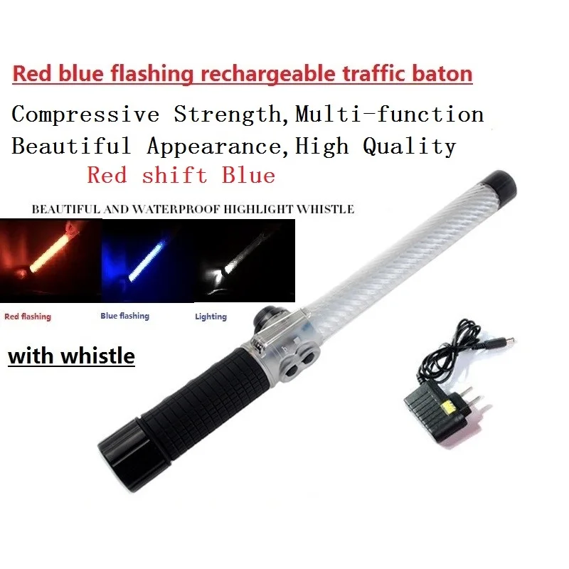 40 см перезаряжаемая красная синяя мигающая жесткая дубинка дорожного движения из поликарбоната со свистком индикатор дренажа