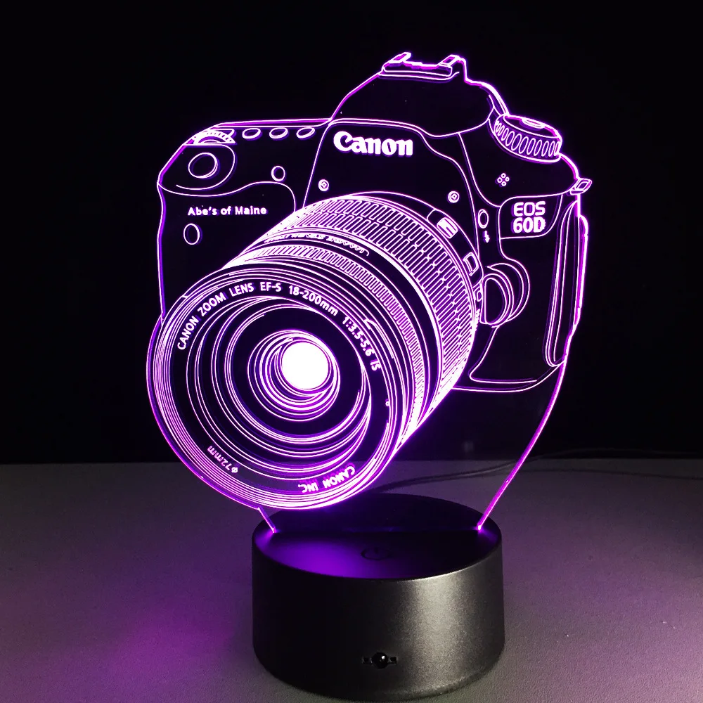 Новинка, 3D акриловая камера, иллюзия, светодиодная USB лампа, сенсорная, RGB, меняющий цвет, настольный ночник, светильник, романтическое прикроватное украшение, GX317