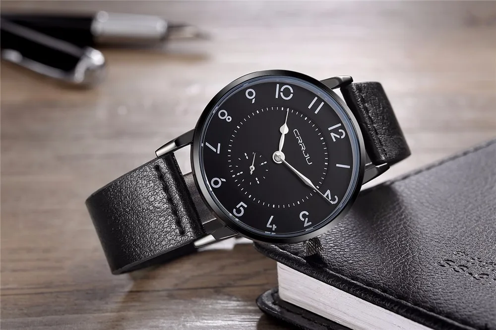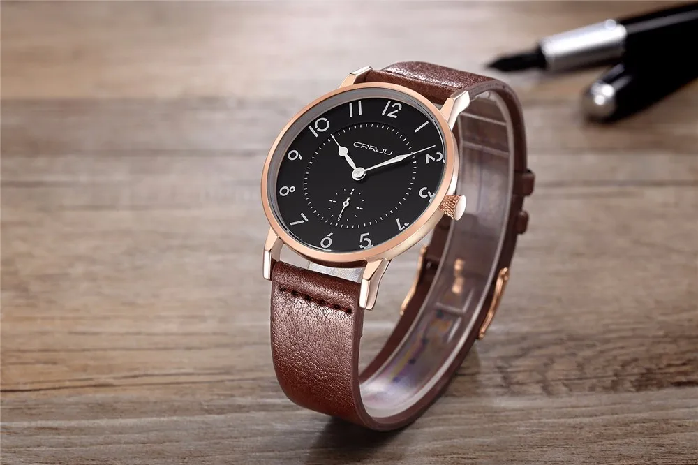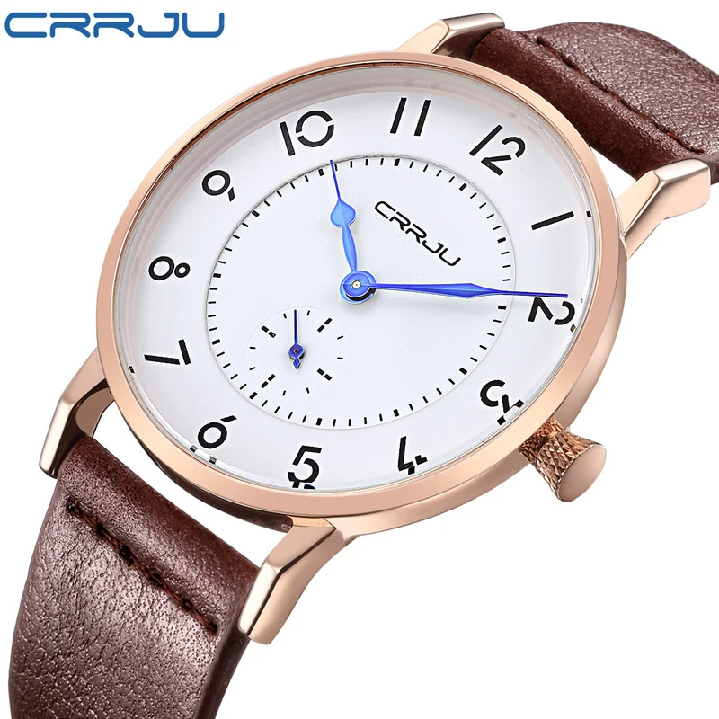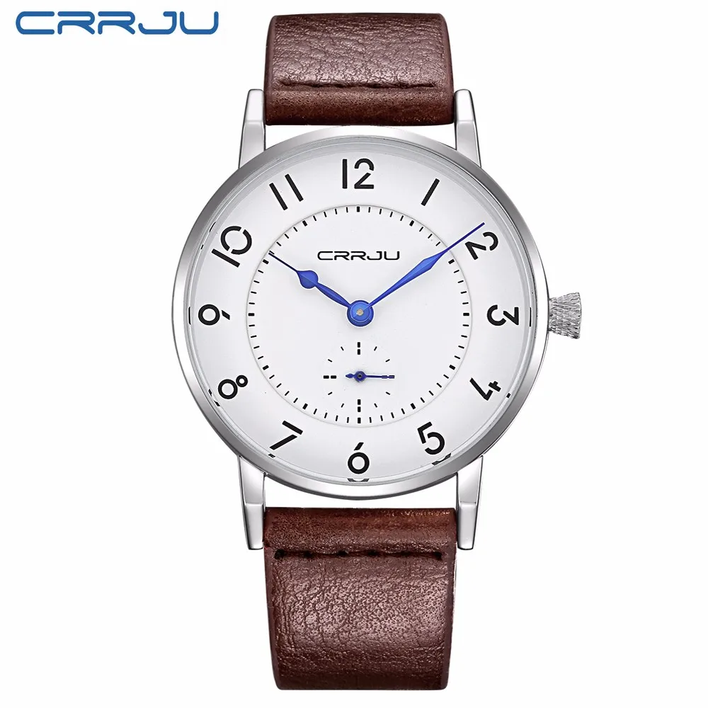 Часы CRRJU мужские, спортивные, водонепроницаемые, ультратонкие, с кожаным ремешком