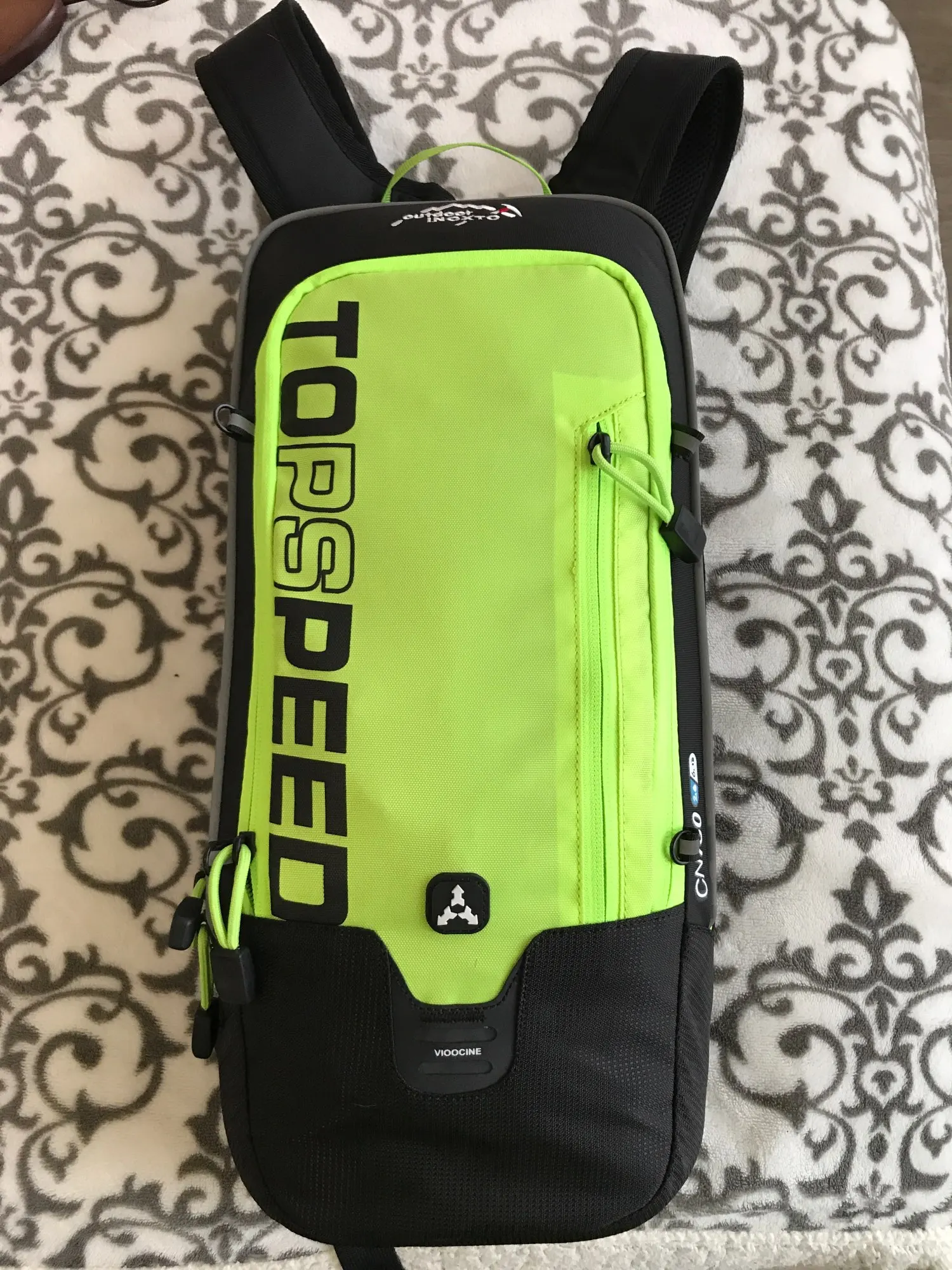 Рюкзак пришел быстро. Как и хотел, небольшой и удобный. Грудная утяжка впритык, но сидит хорошо. светоотражающие вставки по краям рюкзака и сеточка для крепления шлема в комплекте