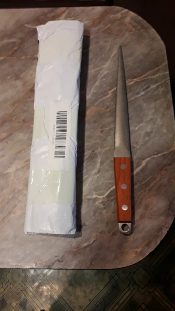 Пришло очень быстро, идеальном порядке. Пока ножи не точила. Материал как пилочка для ногтей))) Позже добавлю комментарий.