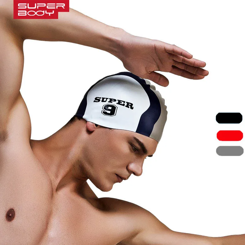 Универсальная Плавательная шапочка SUPERBODY 2016 для мужчин и женщин, брендовая Силиконовая Водонепроницаемая Защитная шапочка для плавания с частицами ушей, силиконовая шапочка для купания