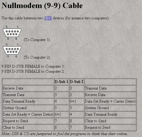 Нулевой тип модема: DB9 # 2-TX(yellw), 3-RX (оранжевый), 5-GND(blk), 7-CTS (зеленый), 8-RTS (коричневый)