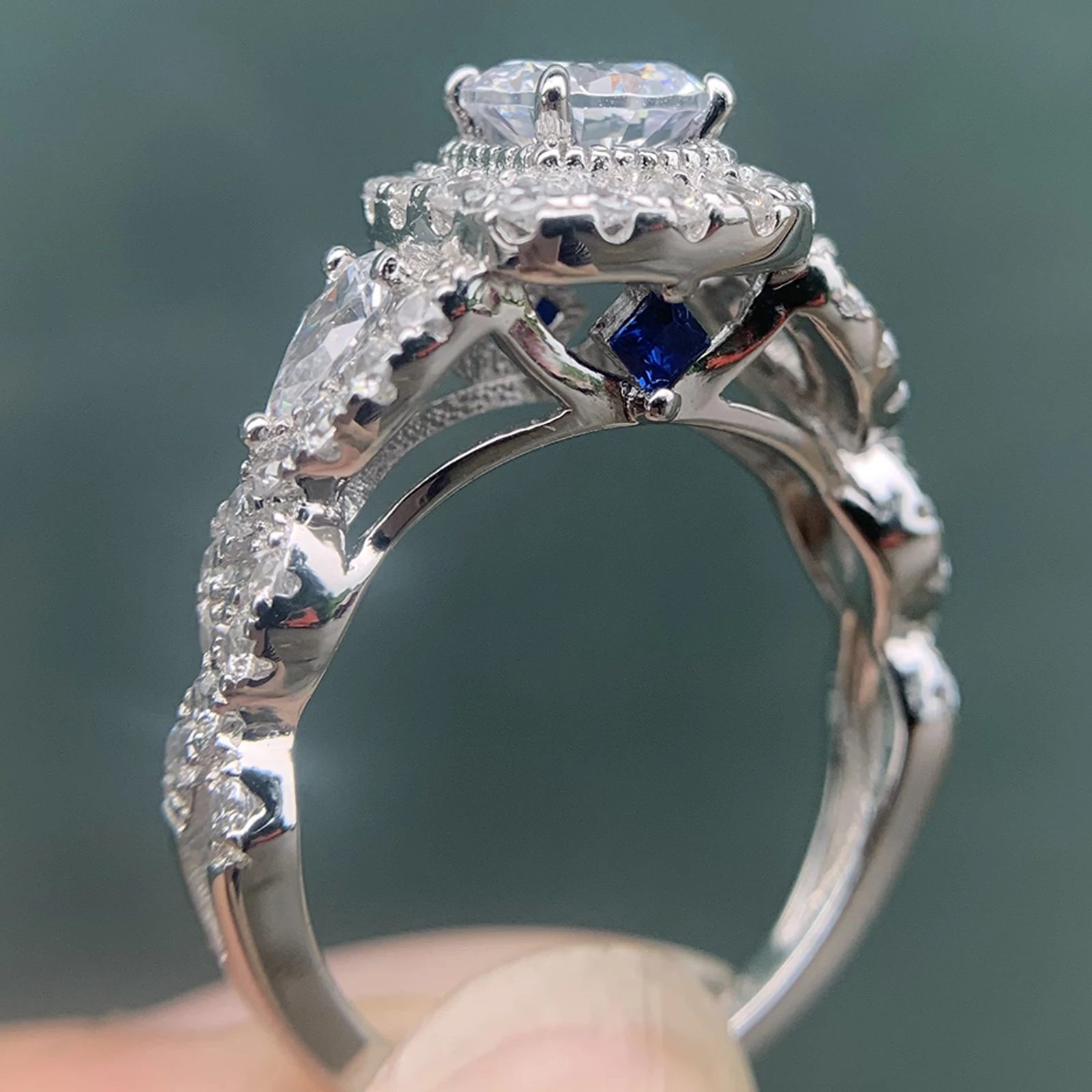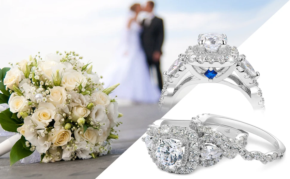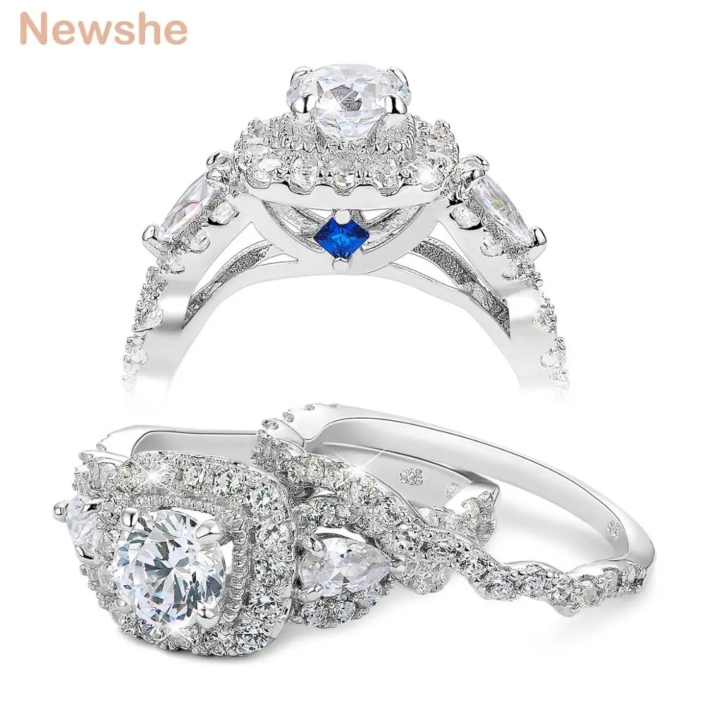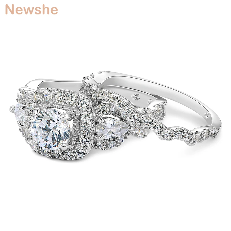 Женский набор обручальных колец Newshe из стерлингового серебра 925 пробы, 2 шт., круглые груши белого цвета, размеры 4-13