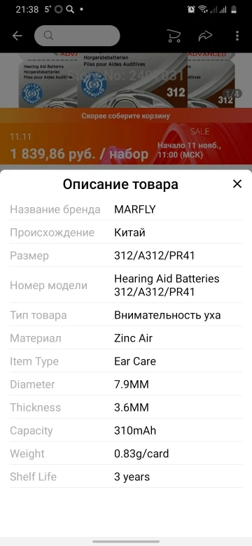 Новые 60 ячеек10 карт Rayovac Экстра 1,45 в, слуховые аппараты, батареи. Цинк воздуха 312A312PR41 батарея для CIC слуховых аппаратов