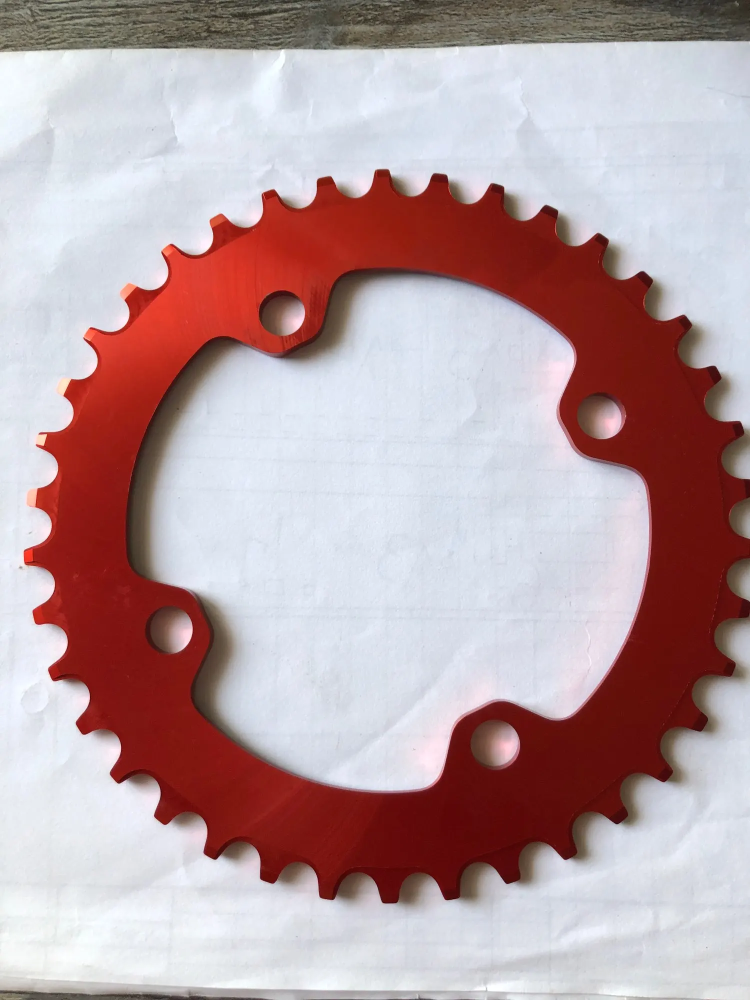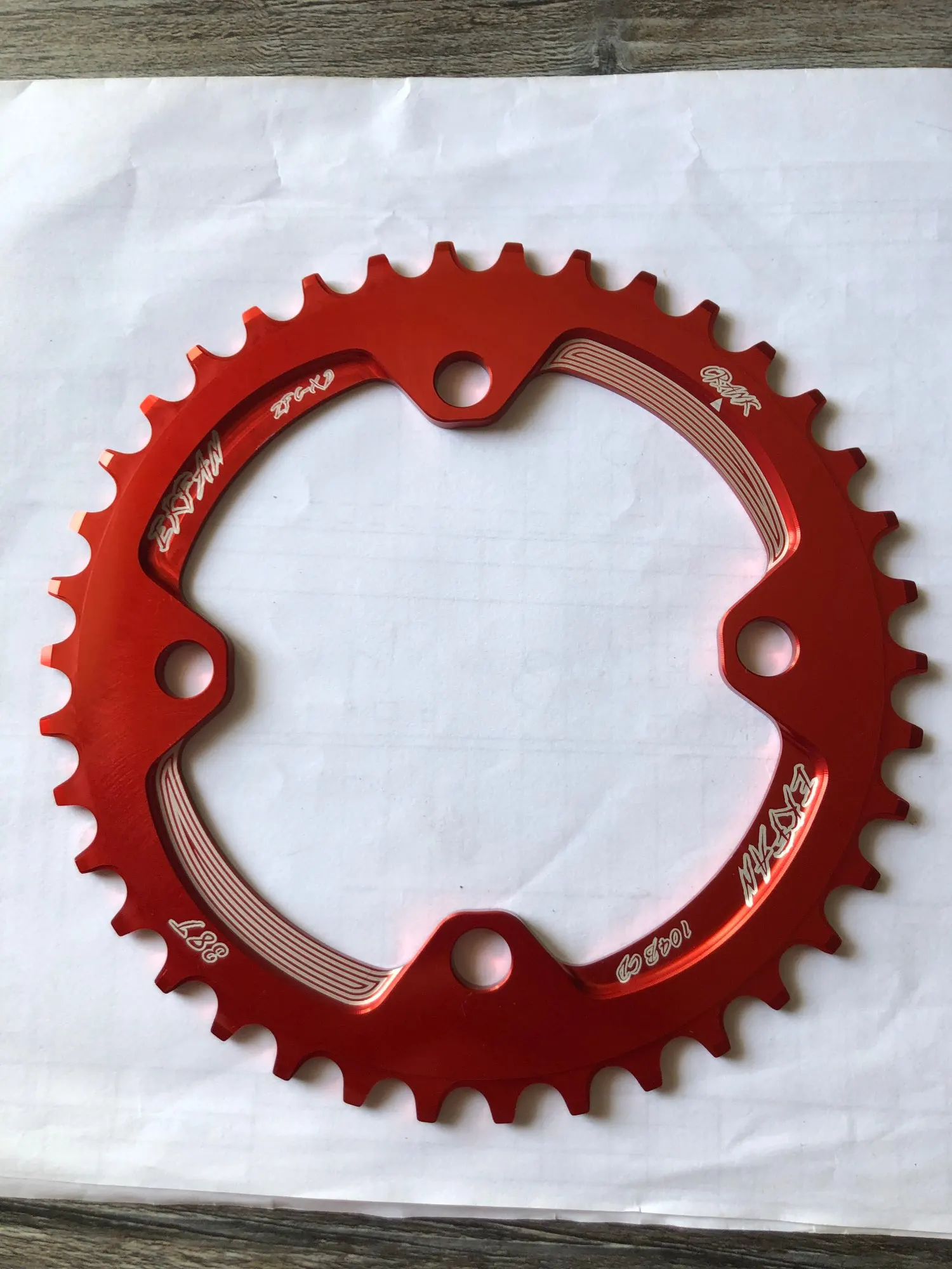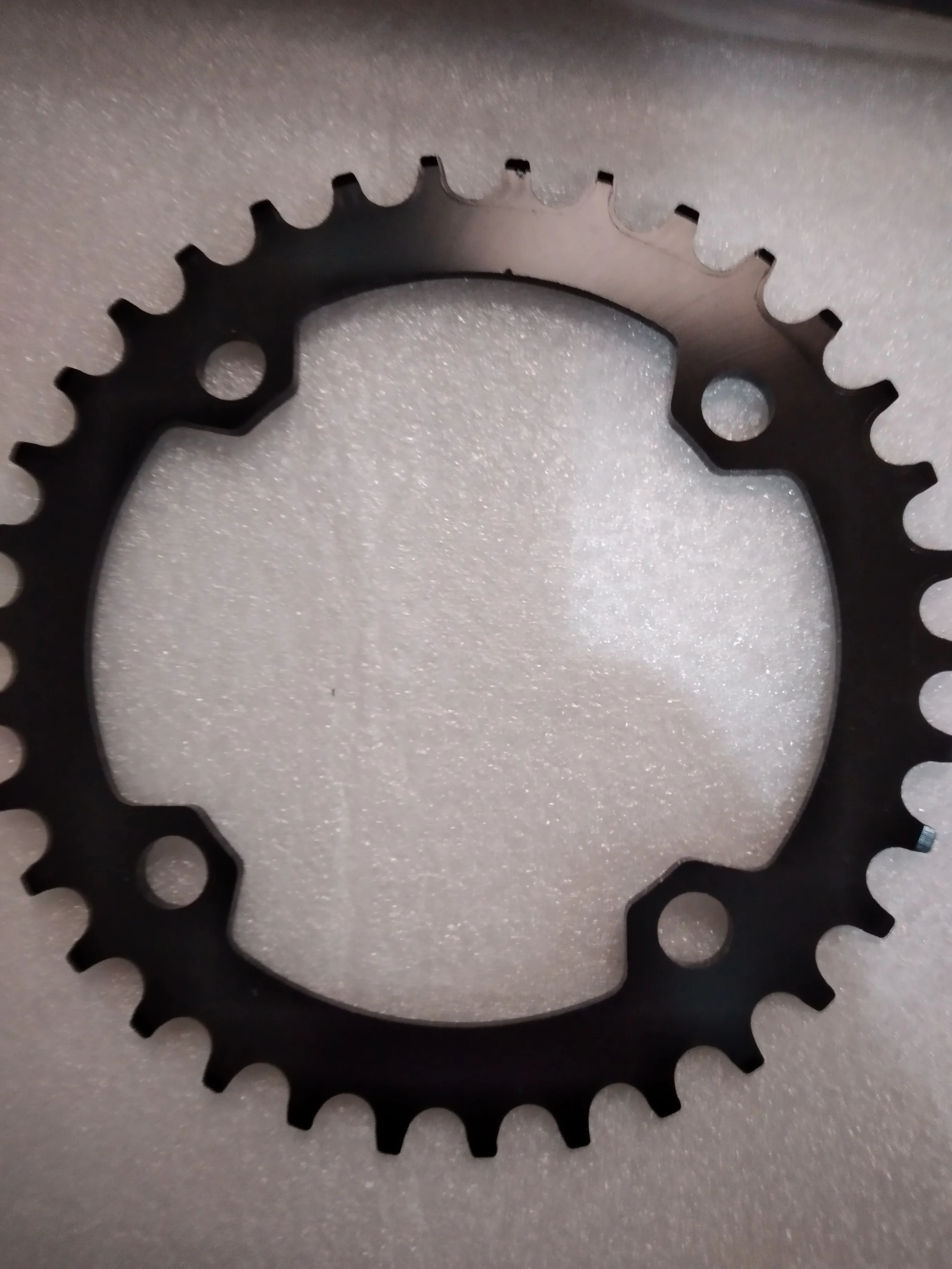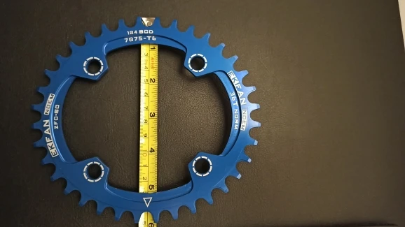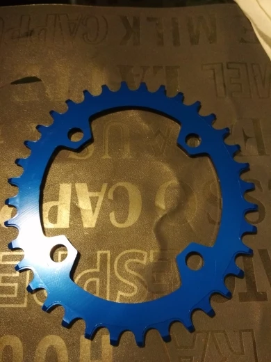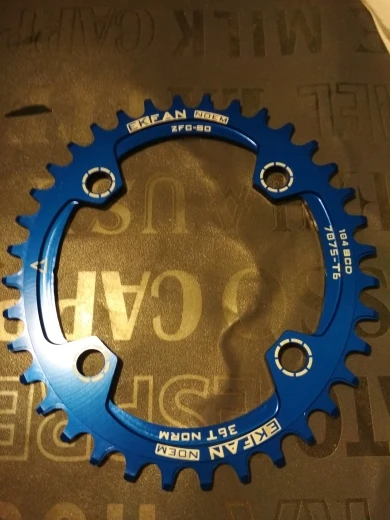 Адекватное качество за свои деньги. Синий цвет довольно глубокий и насыщенный. Овальность можно посмотреть на фото. Была пара мелких царапин, которые ни на что не влияют. Шатун на 104bcd можно поставить только на 3 часа или 12 часов на вертикальный овал, то есть на какие-нибудь идеальные 4 часа её, конечно не протестировать.