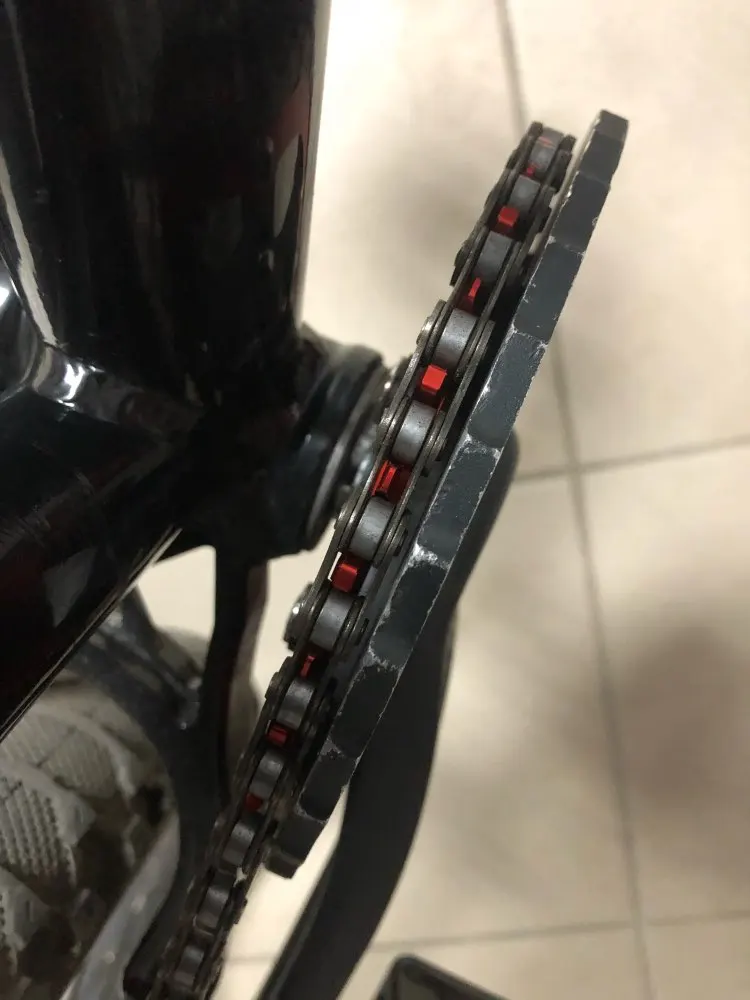 Быстрая доставка. Хорошая цена. По виду - фрезерованная, а не штамповка. Очень легкая. Как и заявлено, зубья narrow wide, под звенья есть углубления. Сделана качественно, погляжу, на сколько хватит. Посадочные отверстия Ф10 мм. Продавца рекомендую.