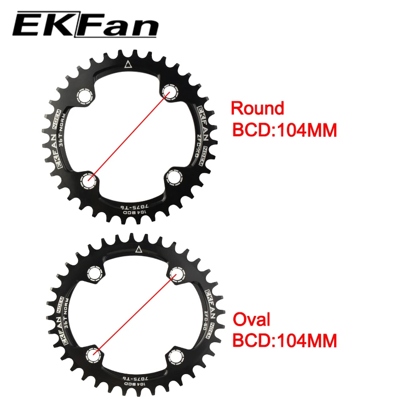 Цепное колесо EKFan 104BCD велосипедная Звездочка 32T34T36T38T, 7075-T6, для горного велосипеда, шатунная пластина