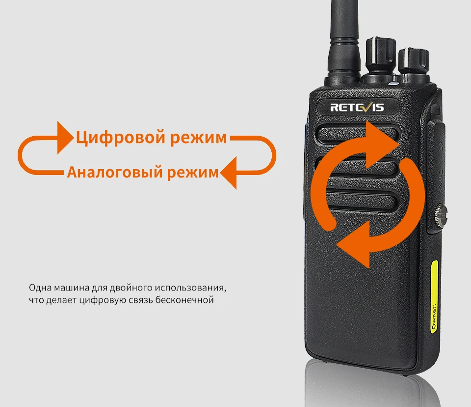 Превосходное качество звука, цифровая технология DMR обеспечивает лучшее подавление шума и поддерживает качество голоса на самом дальнем краю диапазона передачи.