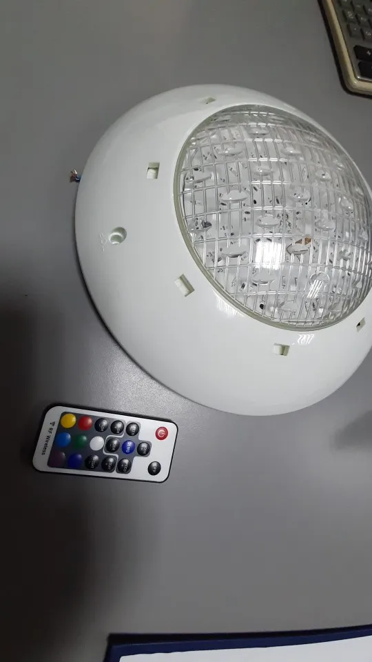 Пульт дистанционного управления работает только на очень коротком расстоянии, как только лампа находится под водой: Вы должны быть менее метра от лампы, поэтому на несколько сантиметров выше воды. И, конечно, мы не можем заметить эту проблему, как только установленная лампа и бассейн заполняет воду... Яркость также очень мала для 36 Вт, особенно при выборе конкретного цвета, что имеет эффект выключения части RGB светодиодов. Красный настолько слабый, что его нельзя использовать. Белый скорее синий/зеленый, а не действительно белый, конечно, из-за слабости Красного.