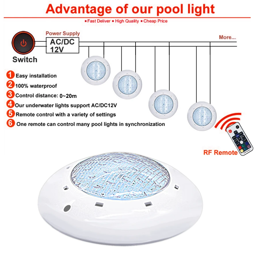 Водонепроницаемый светодиодный светильник для бассейна, Ip68, 24 Вт, 36 Вт, 12 В переменногопостоянного тока