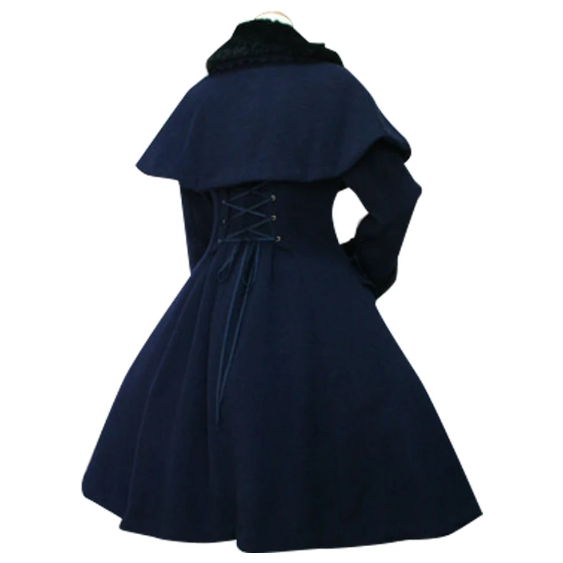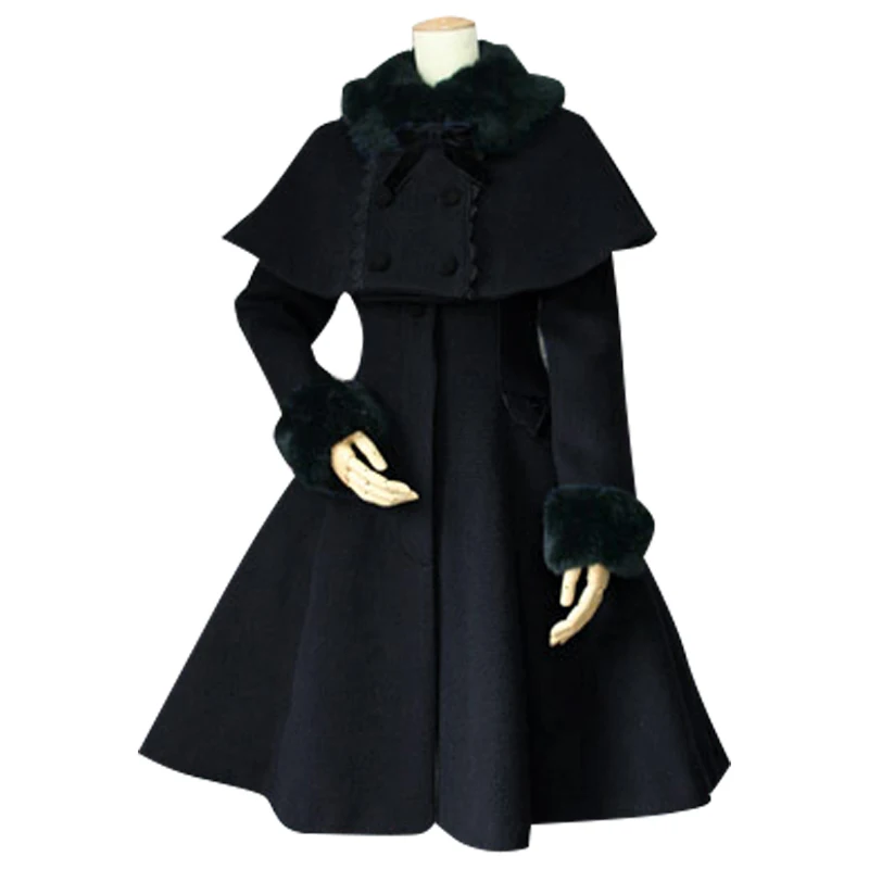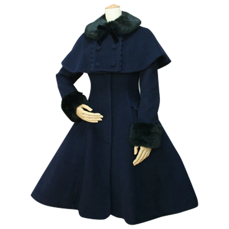 Женское зимнее пальто в стиле ретро на заказ, длинное пальто из двух частей с курткой-пончо