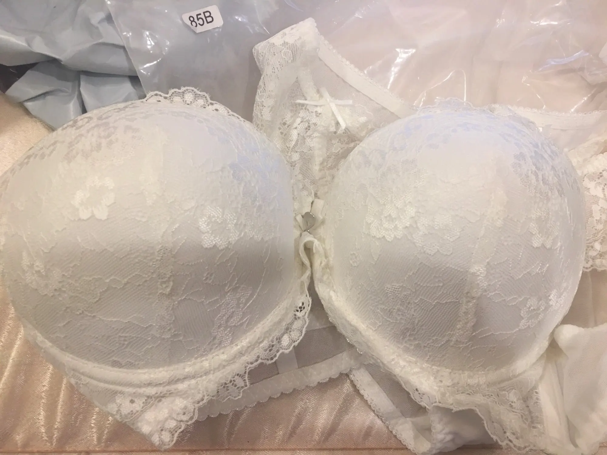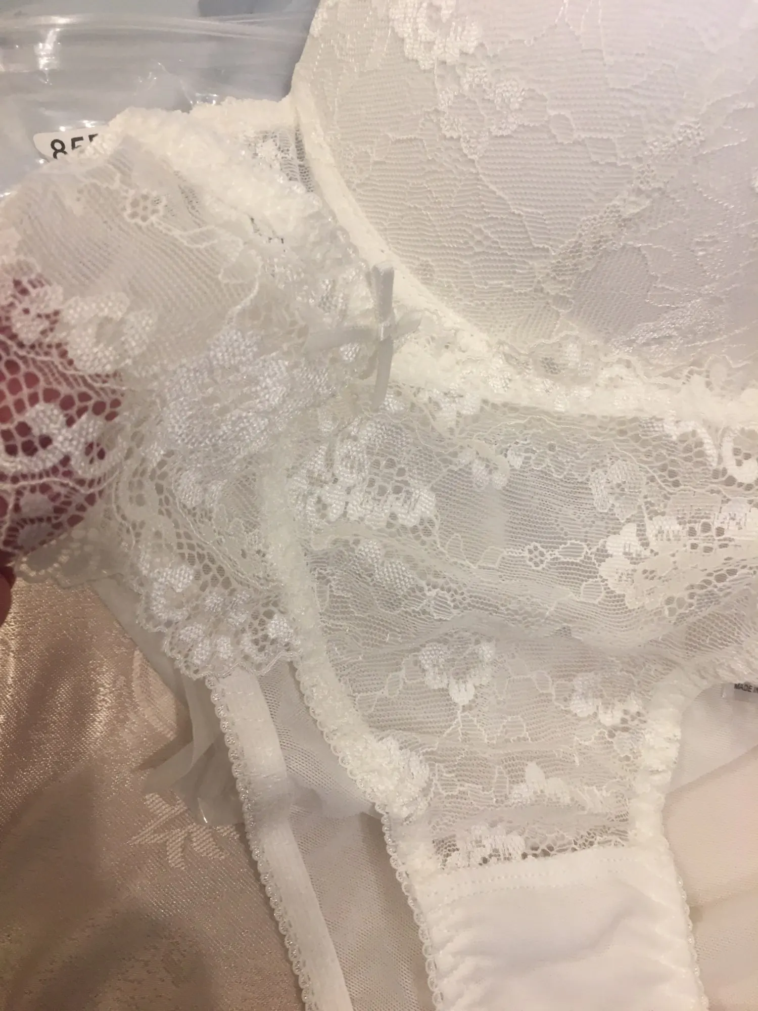 Болье шикарное! Кружево, хороший пуш-ап, все аккуратно, нитки не торчат, запаха нет. Комплект один в один как из Etam, дешевле только в два раза. На грудь 100 см и бедра 108 см размер 85 В сел прекрасно. Рекомендую. Доставка в постамат буквально за 2 недели.