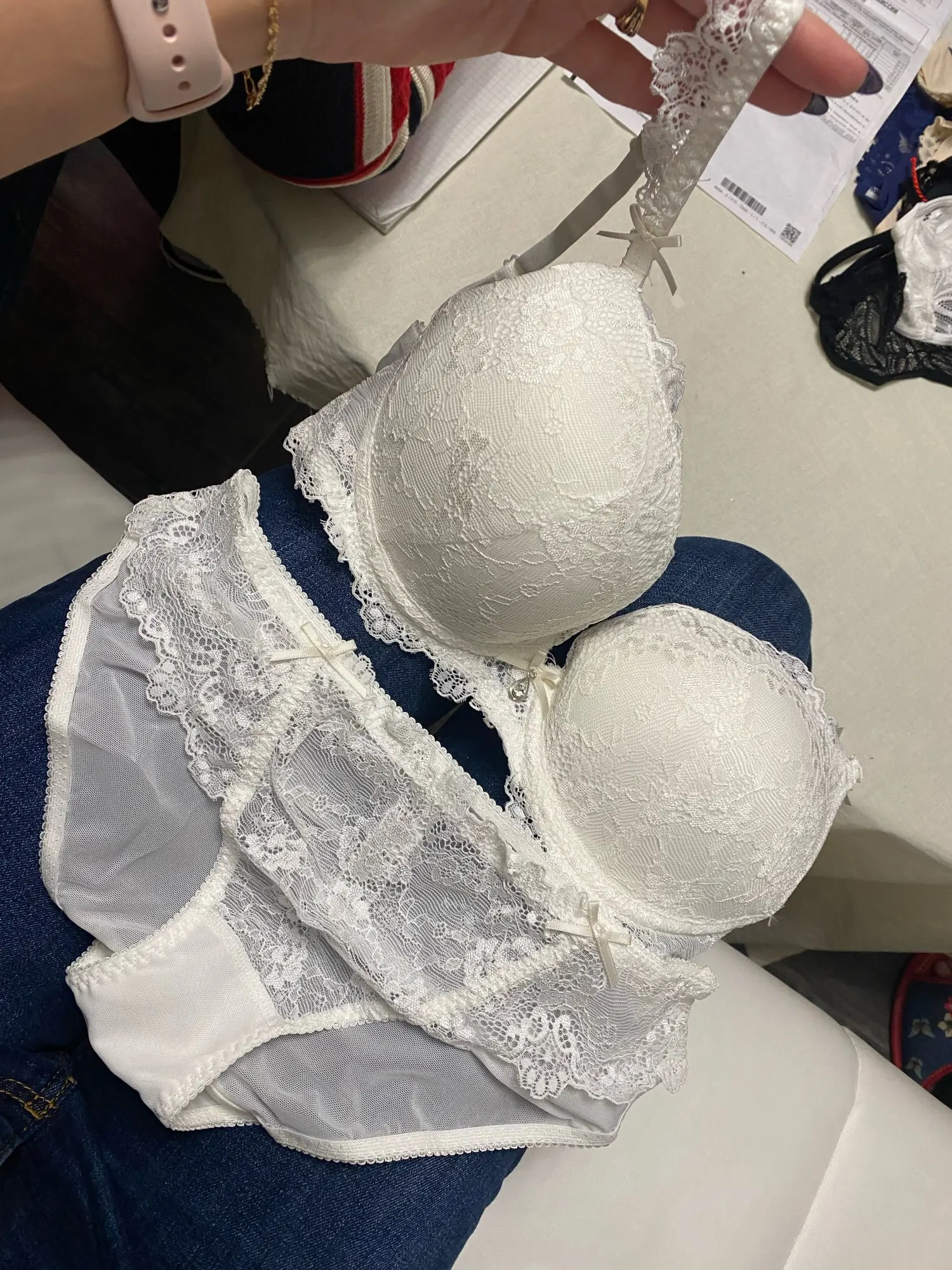 Очень красивый и качественный комплект. Бюстгальтер с пуш-ап. Я купил белый, теперь красный, я буду покупать больше. Быстрая доставка-всего 2 недели я очень доволен. Я настоятельно рекомендую продавцу.