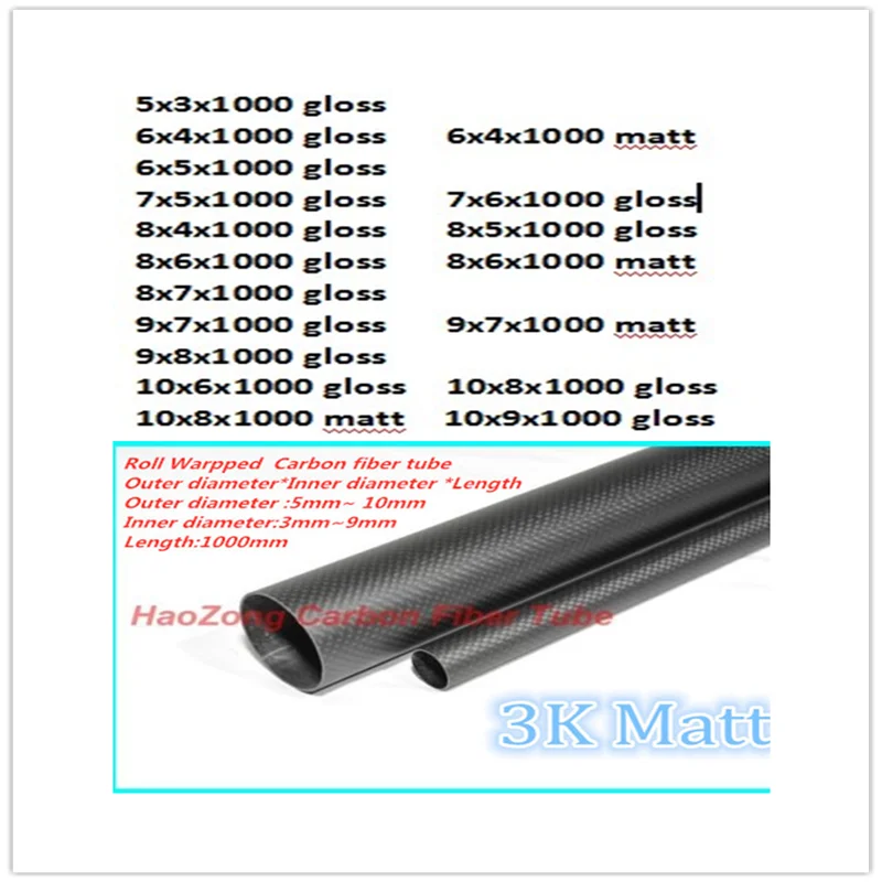 2шт 3k Длина трубки из углеродного волокна 1000 мм x OD 5 мм 6 мм 7 мм 8 мм 9 мм 10 мм (рулон обернутый) для RC самолета Мультикоптер рука DIY