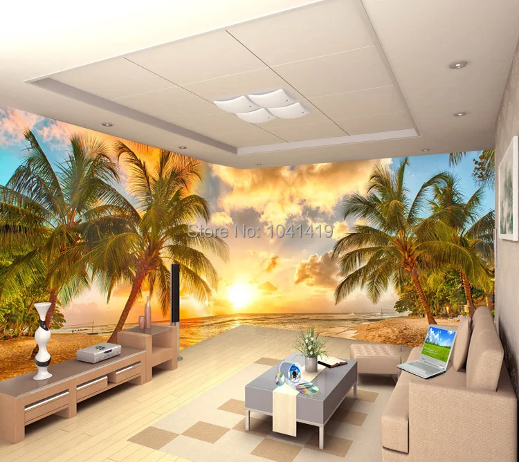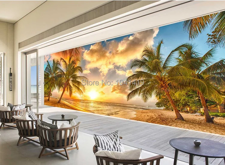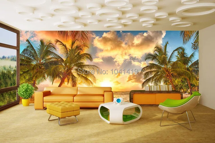Обои 3D фотообои природа на заказ, настенные 3D обои с природным пейзажем для стен, закат, море, кокос, пляж, HD фоновые обои для гостиной