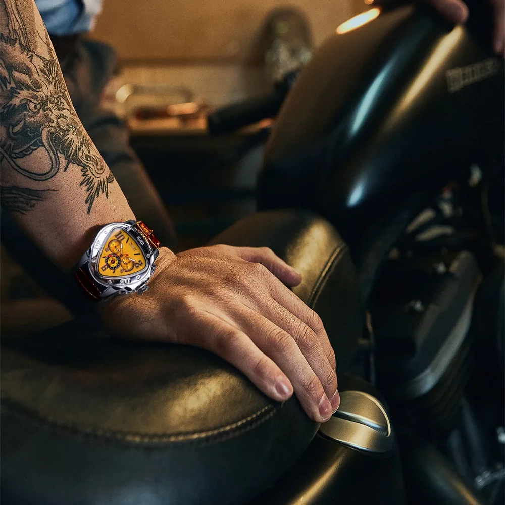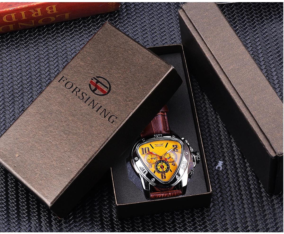Jaragar спортивные часы, модный дизайн, геометрический треугольный чехол, коричневый кожаный ремешок, 3 циферблата, мужские часы, лучший бренд, роскошные автоматические часы