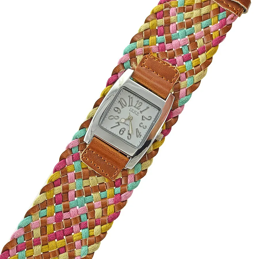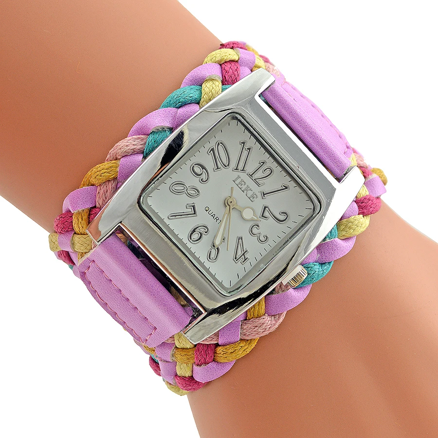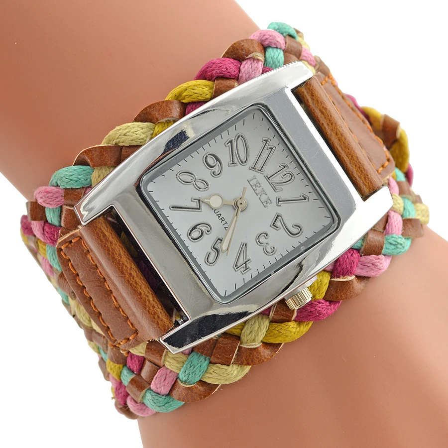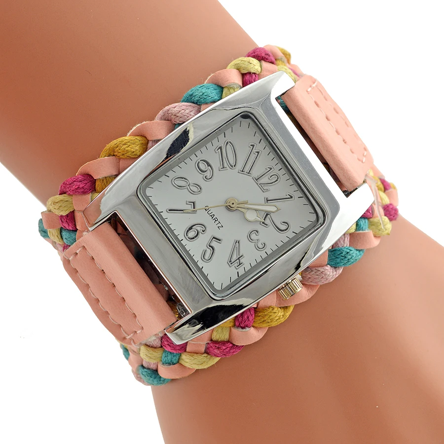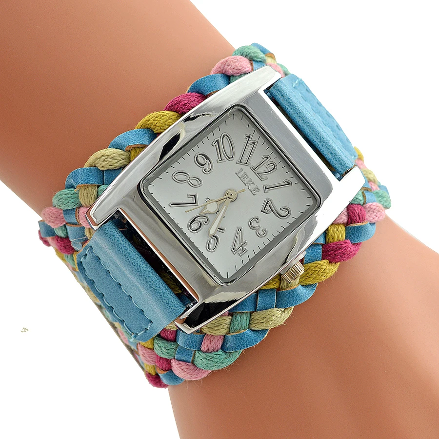 Модные новые Брендовые Часы из искусственной кожи, ЖЕНСКИЕ НАРЯДНЫЕ часы, вязанные с широким поясом, тканые 7 видов цветов, женские часы с радужным браслетом, наручные часы
