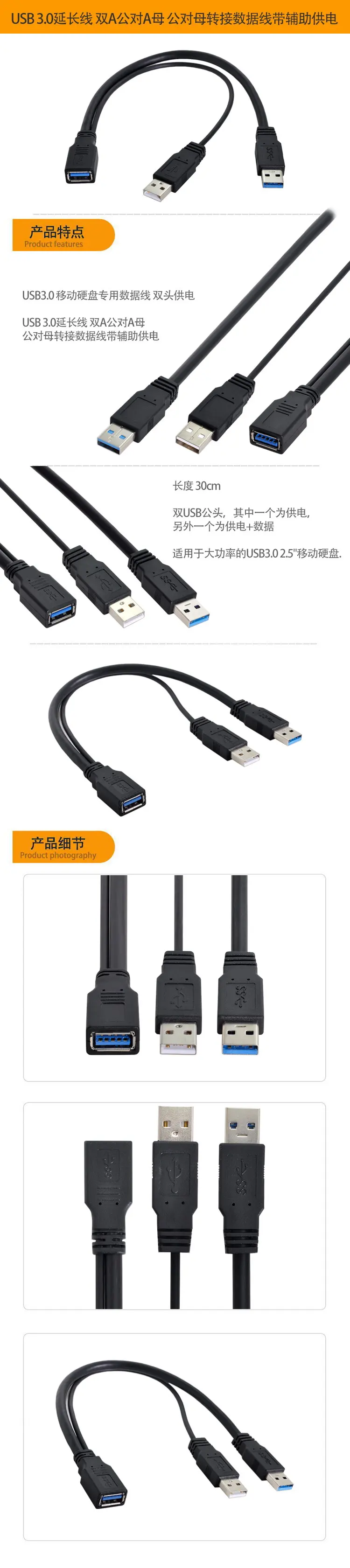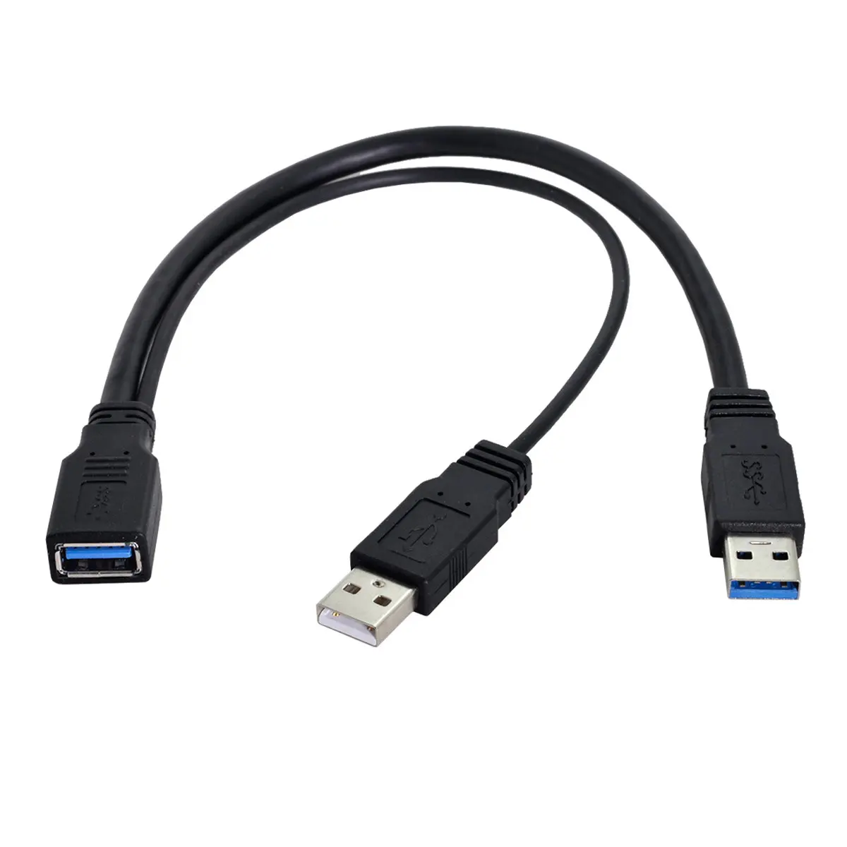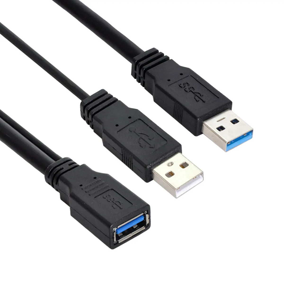 Черный USB 3,0 Женский двойной USB мужские удлиненные Мощность данных Y кабель-удлинитель для 2,5 "корпус переносного жесткого дискаДва разъема USB, один-для питания и передачи данных USB 3,0, другой-только для питания USB 2,0.Не достаточно ли одного usb-порта для питания вашего usb-устройства?Наша Синхронизация USB 3.0 Адаптер питания Y кабель для вашего решения. Наш кабель обеспечивает питание от 2 usb-портов, таких как ПК и внешний жесткий диск.Позволяет подключить 1 usb-устройство к 2 usb-портам на вашем ПК для большей мощности.