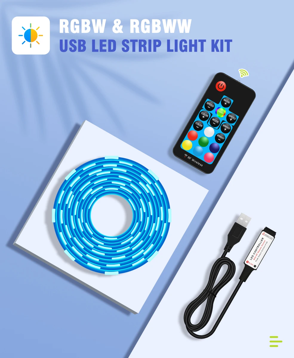 Светодиодная лента USB RGB + белая с пультом дистанционного управления RF, IP20, гибкая светильник са света 5050, RGBW, фоновая подсветка для телевизора, gting 0,5-5 м