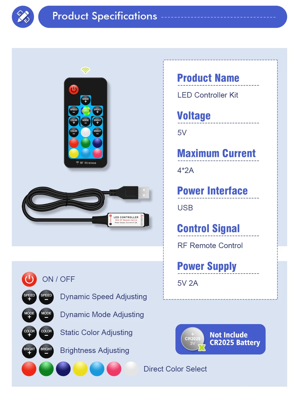 Быстрая доставка и выглядит хорошо. Советы: если вы получили неправильный цвет на одной из полосок по сравнению с остальными, поверните контакт на 180 градусов и сложите его обратно. Кроме того, я кладу батарею в пульт дистанционного управления неправильно (это возможно), и она не будет работать. Аккумулятор CR2025 не входит в комплект. Руководство имеет очень маленький текст, вам нужно использовать микроскоп, чтобы увидеть текст... У меня есть QLED Samsung 43 дюйма, и он хорошо работает в usb-порту