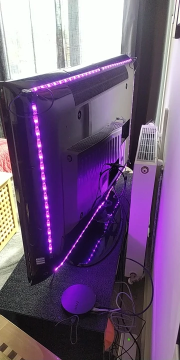 Прибыл. Хорошо работает. Измеряется по телевизору, но Светодиодная лента на двух лентах превышает размер моего телевизора, который составляет 43 дюйма, а лента маленькая. Но красиво, стоит порекомендовать.
