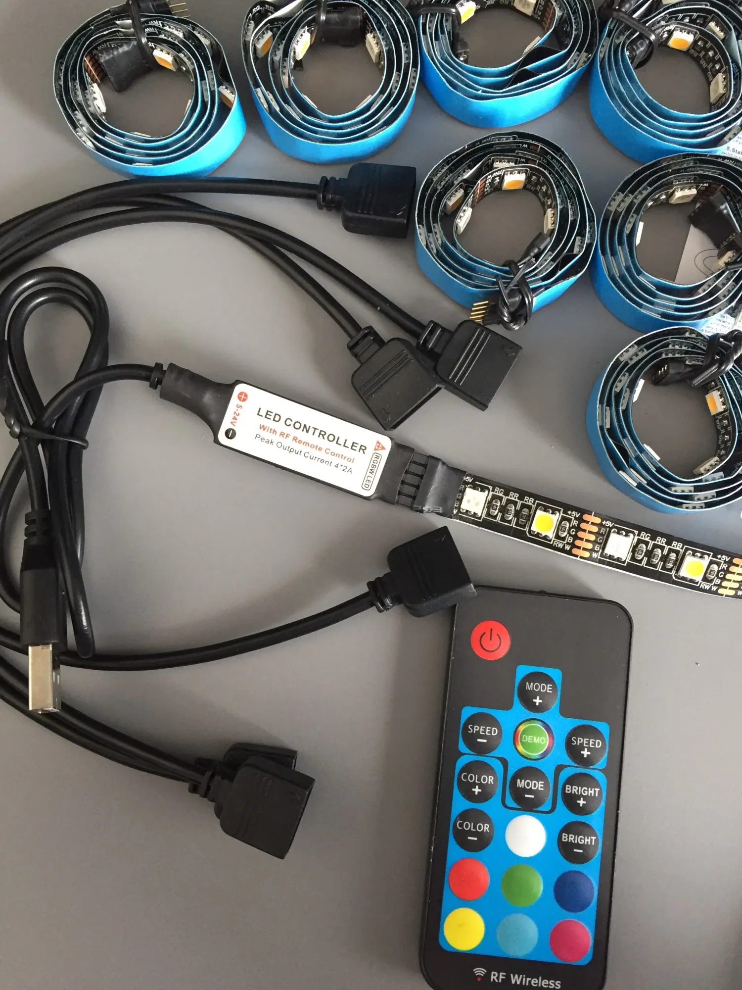 Вы отлично выглядите! Я рекомендую их много, так как эти кабели приходят и для углов они необходимы, чтобы сделать их сверху! Очень легко кататься! Я рекомендую вам кататься на них и проверить их, прежде чем ударить их, чтобы убедиться, что вы наденете их с правильными полюсами, и они уйдут. Хорошо. Хорошо. Вы можете зафиксировать цвет, вверх и вниз яркость, автоматический режим и изменить цвет отдельно. У меня была дополнительная Светодиодная лента, но из-за телосложения телевизора, что было плохо для подключения usb-порта к телевизору, все еще вы не можете сказать, что он носит нижнюю полоску.