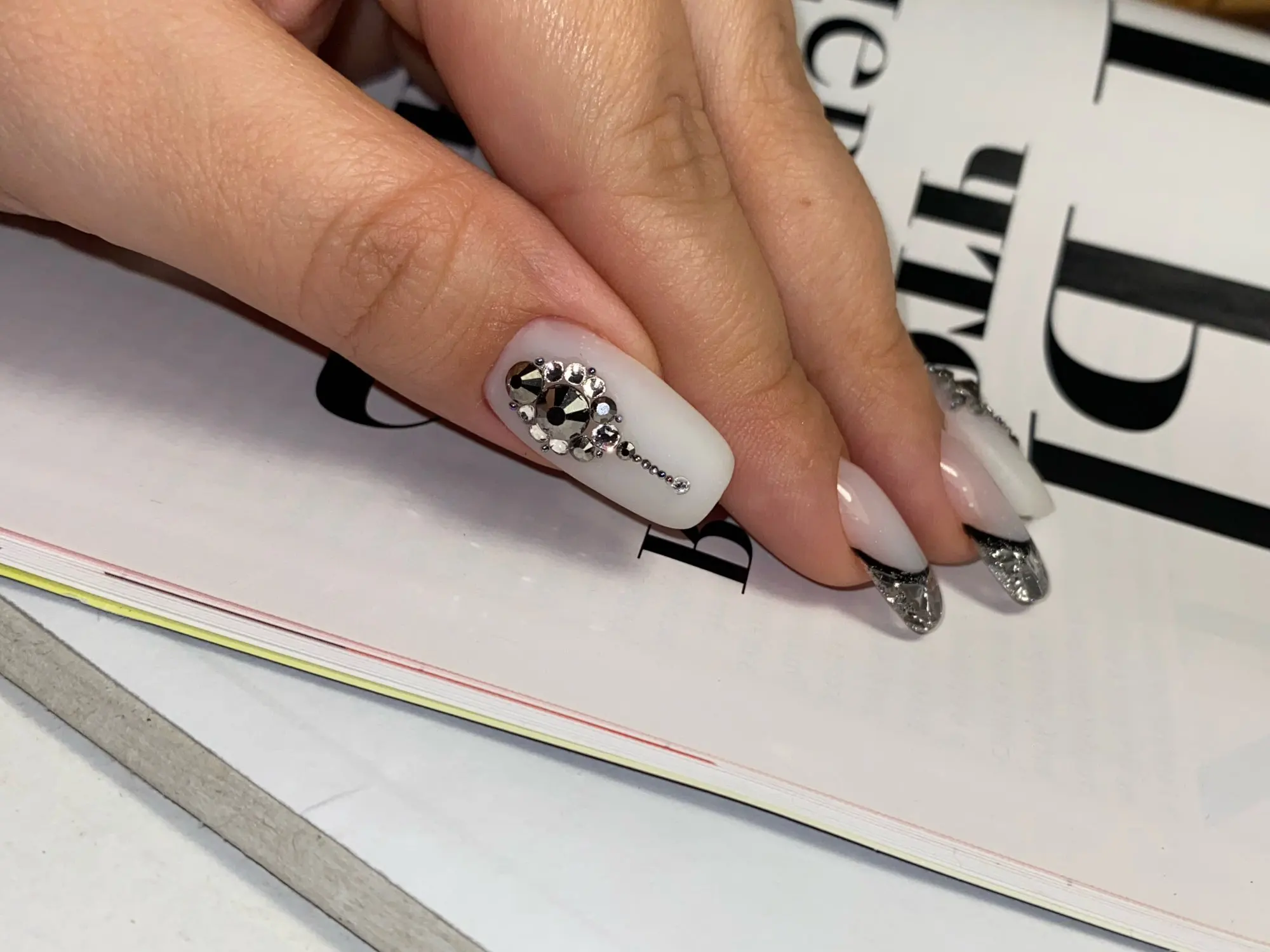 Черный гематит 3D дизайн ногтей ss3 ss4 ss5 ss6 ss8 ss10 ss12 ss16 ss20 ss30 ss34 стеклянныеКристальные ногти без горячей фиксации Стразы