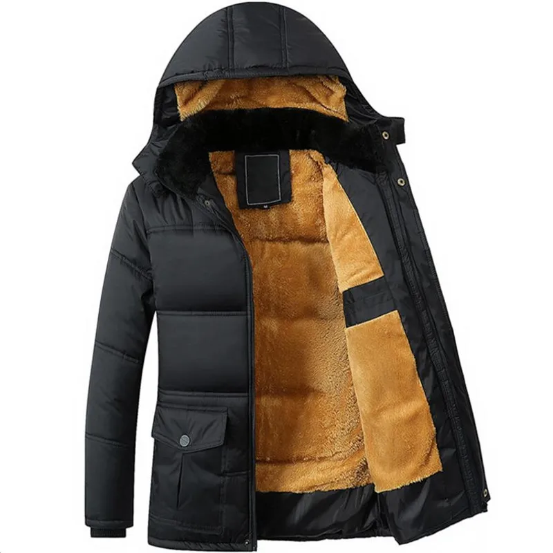 Новая зимняя мужская куртка, утепленный черный бархатный пуховик с капюшоном, мужское пальто, пальто, хлопковая куртка
