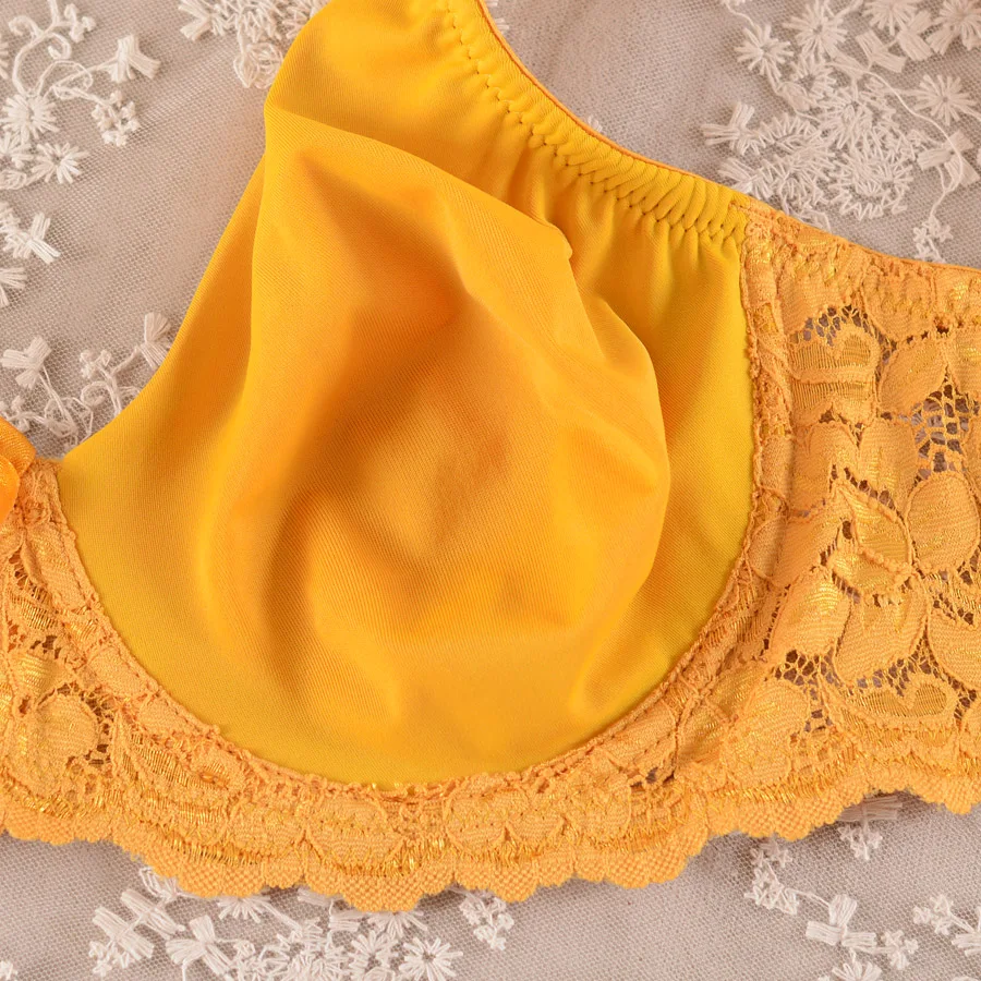 Женский бюстгальтер большого размера плюс, кружевной бюстгальтер большого размера, желтый бюстгальтер с широкими бретелями и широким охватом, BH, для больших женщин, C D E F G