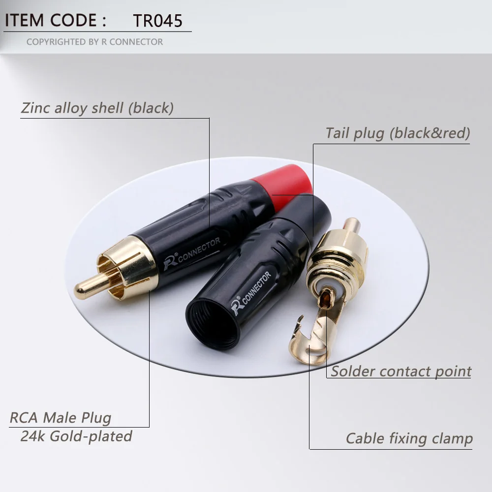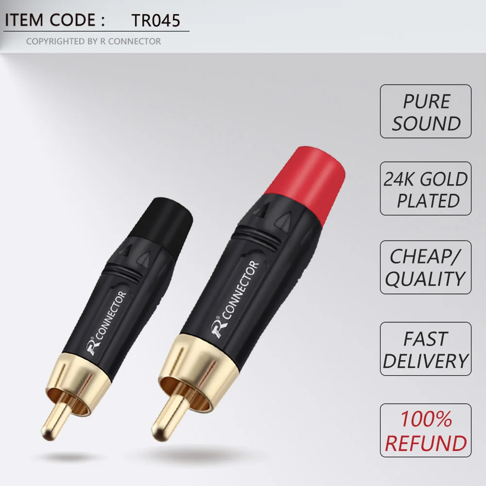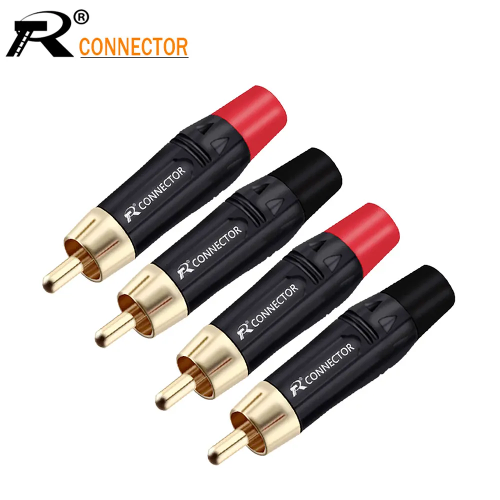 2 шт., высококачественный RCA Штекерный разъем, позолоченный аудиоадаптер, черный и красный