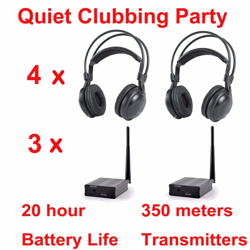 Профессиональные беспроводные наушники Silent Disco compete system-тихий комплект клубных вечеринок (4 наушников + 3 передатчика)