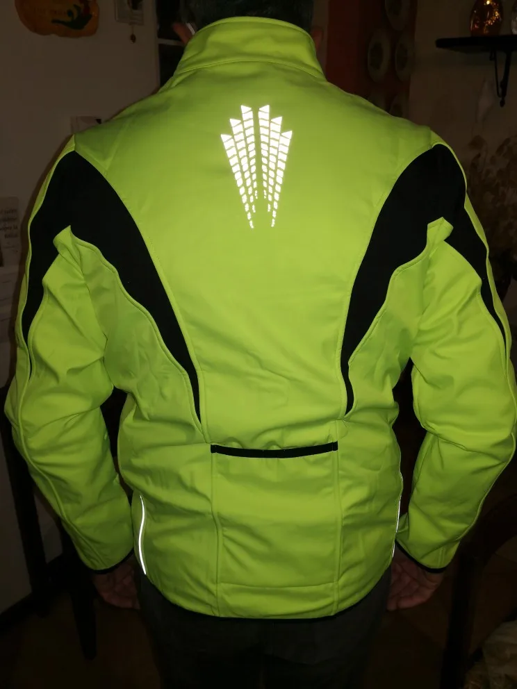 Понравилась куртка, однозначно стоит своих денег. На плечах и спине есть светоотражающие элементы. Взял размер Азия L, Европа S, подошла хорошо, на рост 177 см, вес 68 кг, хотя продавец советовал XL, но хорошо что не послушал его.
