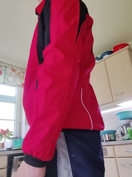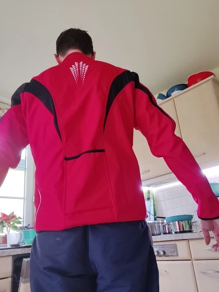 Нормальная плотная куртка с длинной спиной. есть места. с неплотной тканью для вентиляции. Хорошо застегивается под горло. плотно сидит. при велопосадке спина закрыта, как и должно быть. Два кармана - задний и нагрудный. Очень быстро пришло в Украину - меньше 20 дней, Мист экспрессом.