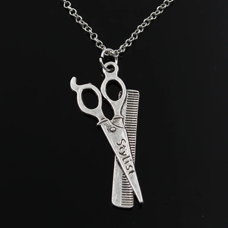 Новинка, модные Парикмахерские ножницы-гребень, стильные подвески, круглые перекрестные цепочки, Короткие Длинные мужские и женские Серебристые ожерелья, ювелирные изделия в подарок