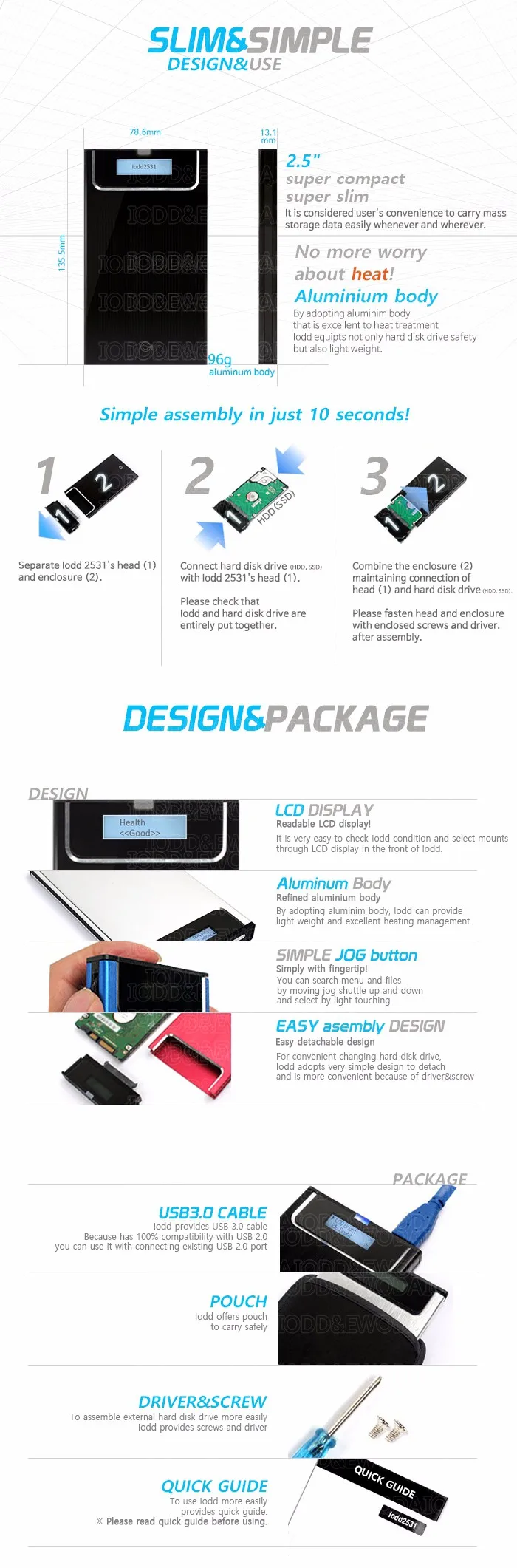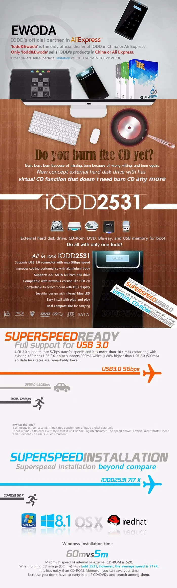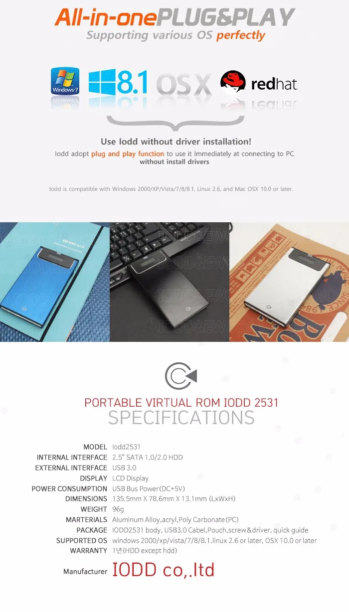 IODD2531 Корпус внешнего жесткого диска USB 3,0 виртуальный DVD Blu-ray ROMISOVHDзагрузочныйSSDHDD2,5