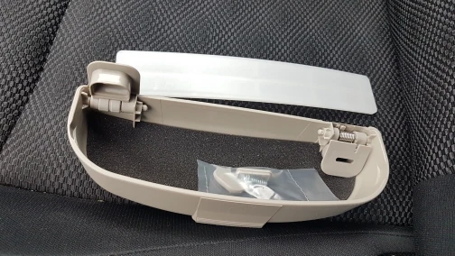 пришел за 2 недели в Липецкую область. г-на ниссан кашкай j11 подошёл хорошо. пришлось подложить пластинки 2 мм под крепления что бы при открывании не цеплял за обшивку. размером большой, очки со свистом проскочили. хотелось бы что бы и стенки были в поролоне. по цвету серый хорошо подошел. советую к покупке!