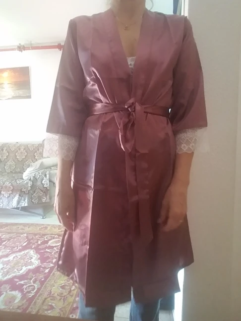 Халат красивый но сорочка ужасного пошива, на груди совершенно не сидит