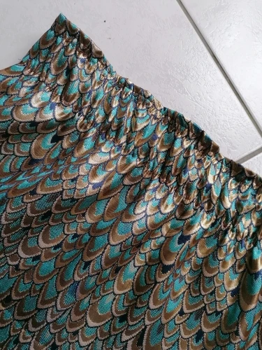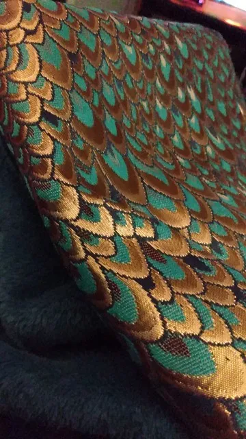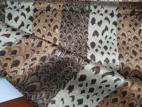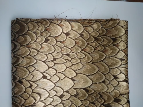 Красивая ткань. Золото блестящее, но есть небольшие запахи или дефекты. Не заметен на расстоянии. Используя для восстановления стула, мы надеемся, что он хорошо вмещает. В целом доволен своей покупкой.