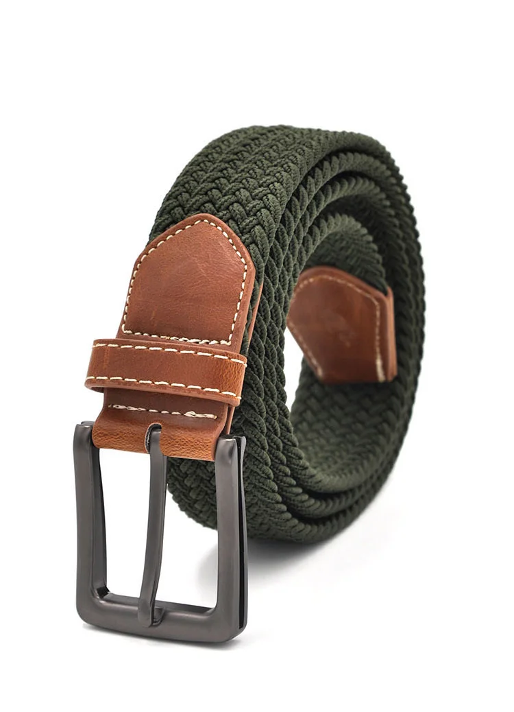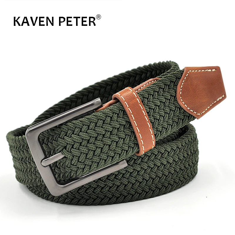 Зеленый Длинный эластичный ремень для мужчин, тканая плетеная ткань, удобный эластичный Повседневный ремень, ширина 1-38 дюйма, горячий металлический эластичный ремень 160 см